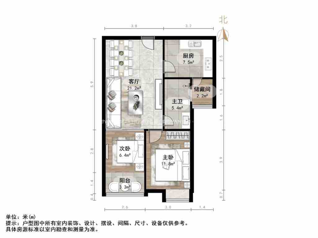 厅室2室2厅1卫1阳台