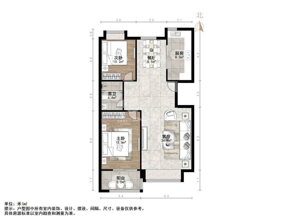朝向南北 建筑面积105㎡