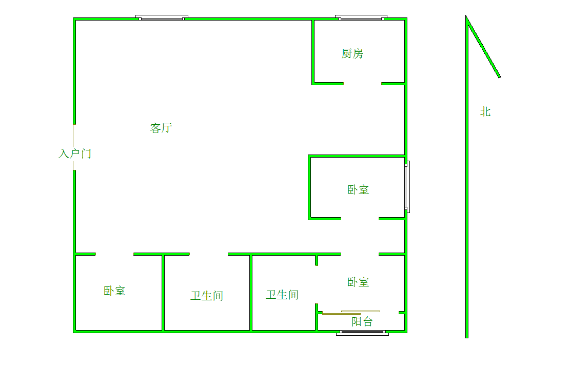厅室3室2厅1卫1阳台
