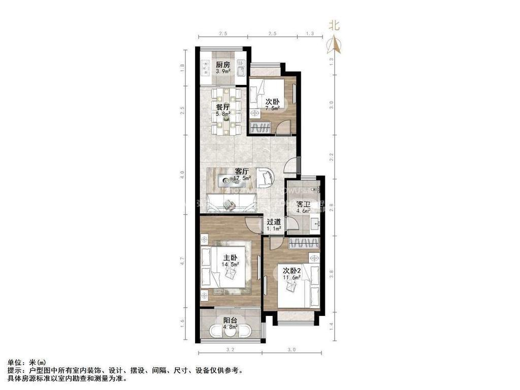 朝向南北 建筑面积115㎡