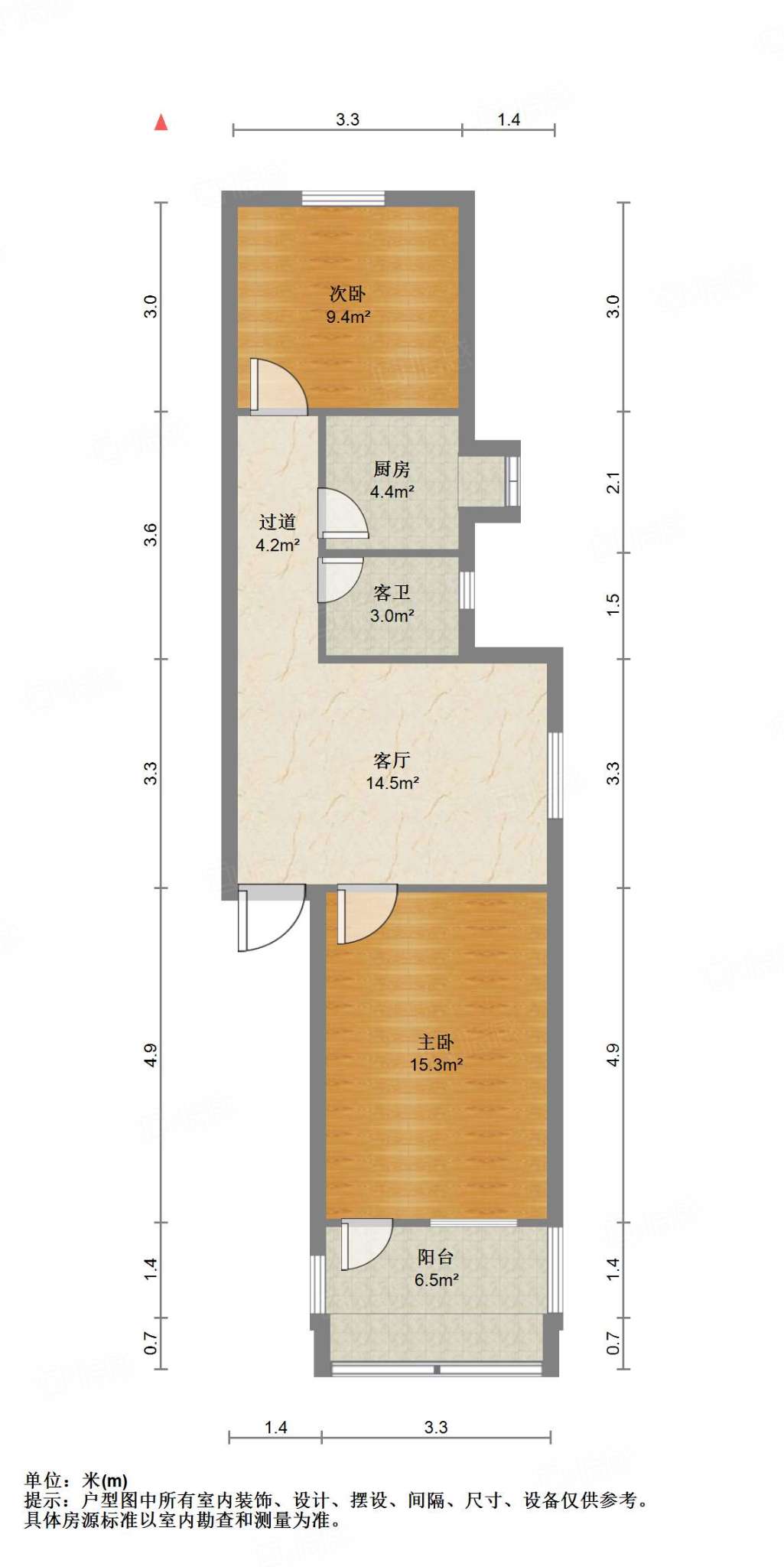 朝向南北 建筑面积65㎡
