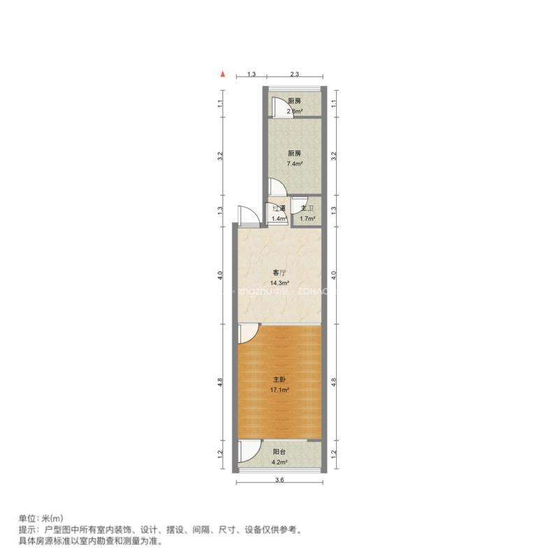 厅室1室1厅1卫1阳台