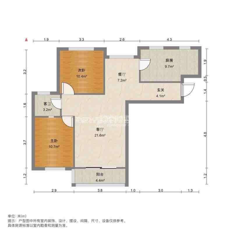 厅室2室1厅1卫1阳台