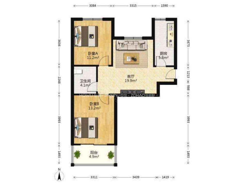 朝向南北 建筑面积85.29㎡