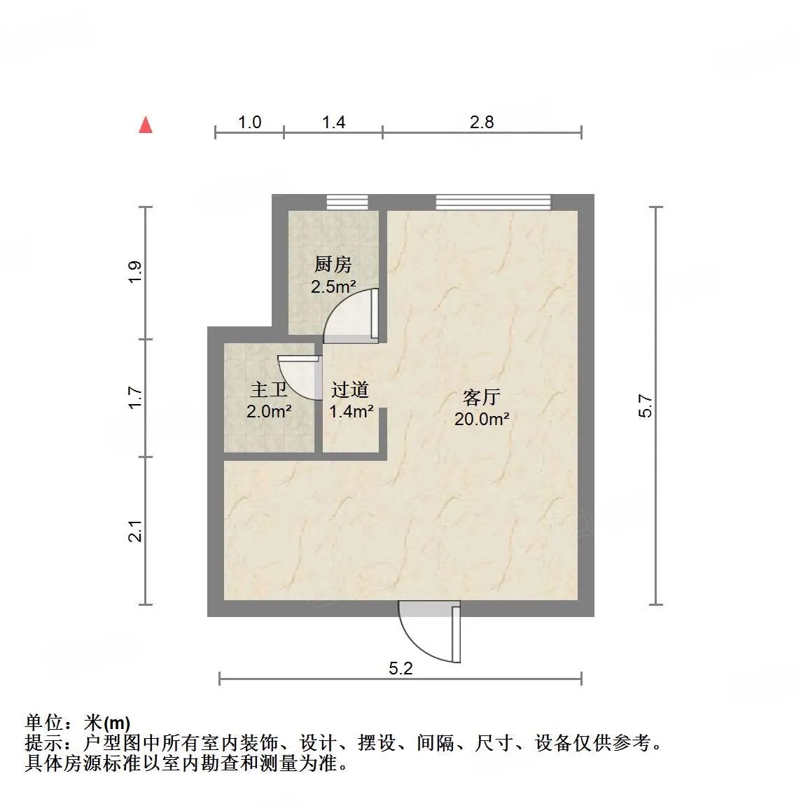 厅室1室1厅1卫1阳台