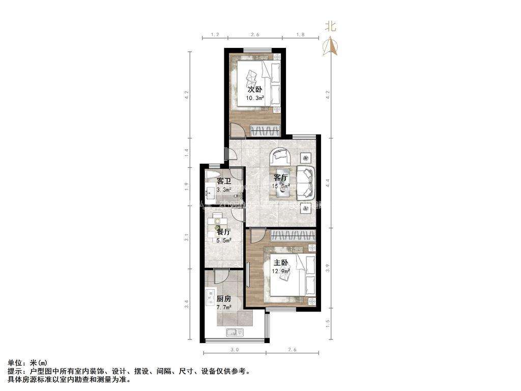 朝向南北 建筑面积66.11㎡