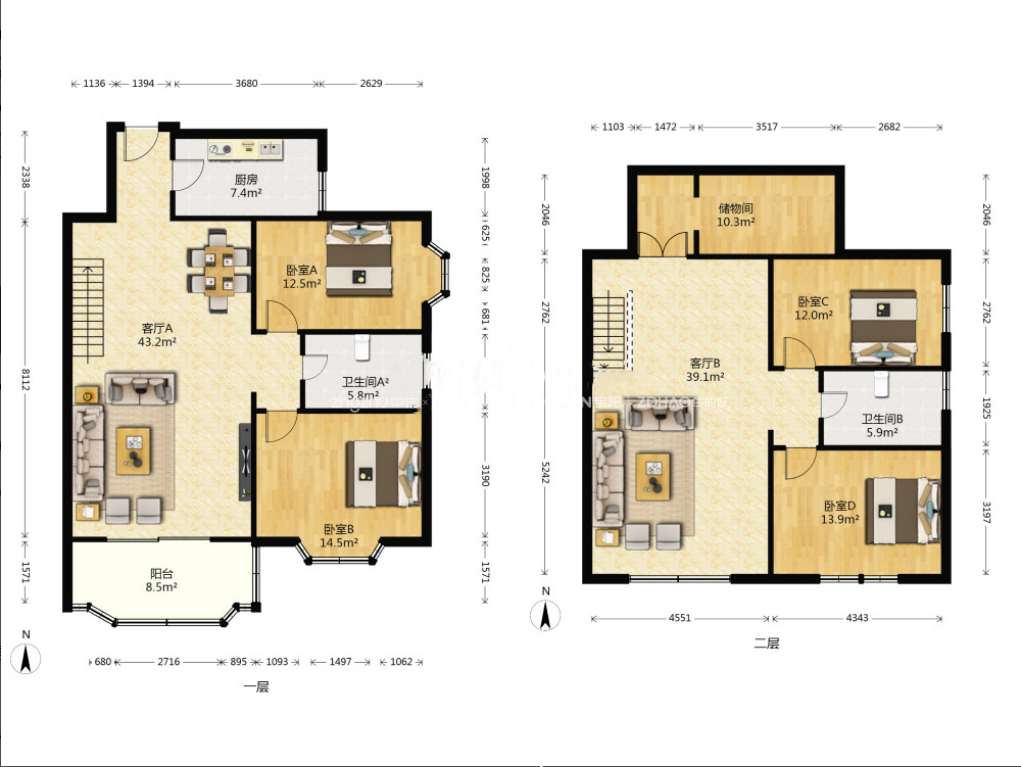 朝向南北 建筑面积176㎡