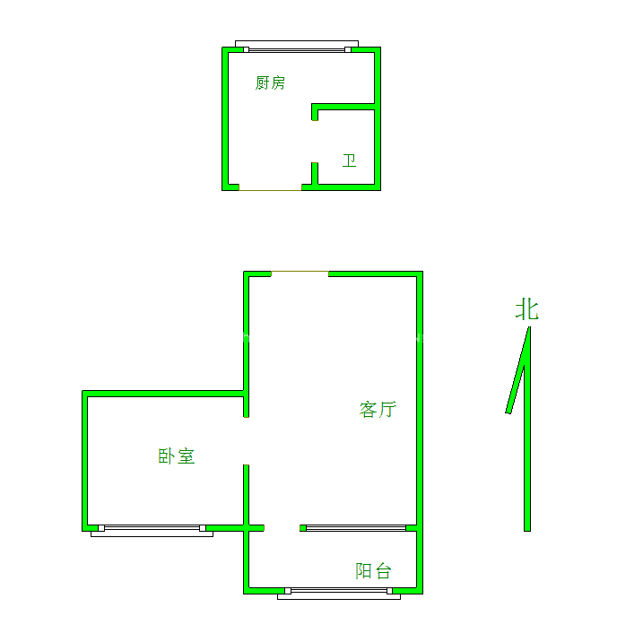 厅室2室0厅1卫1阳台