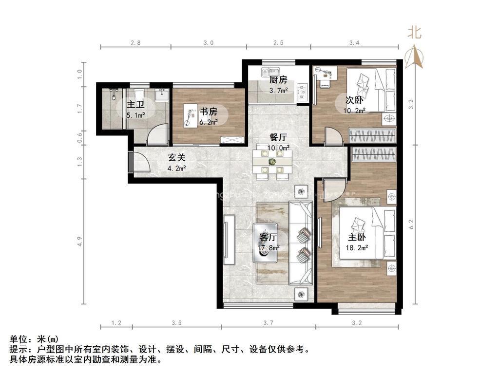 朝向南北 建筑面积103㎡