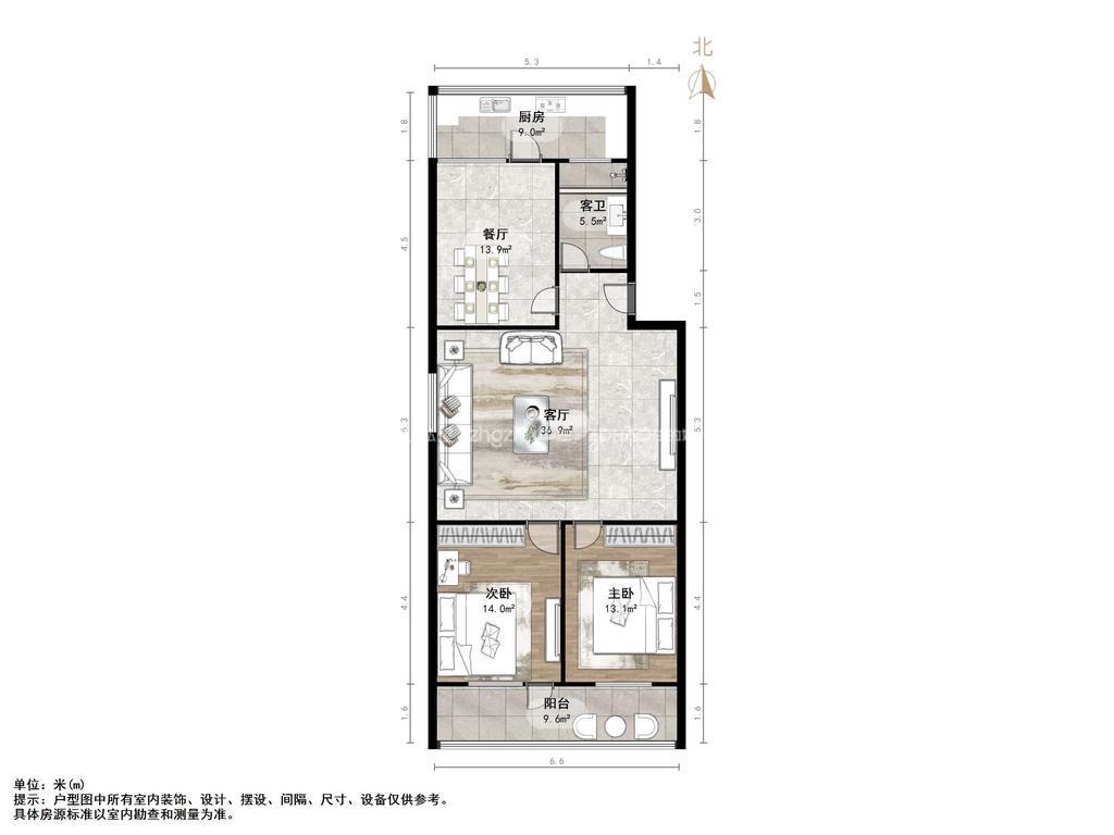 朝向南北 建筑面积109㎡