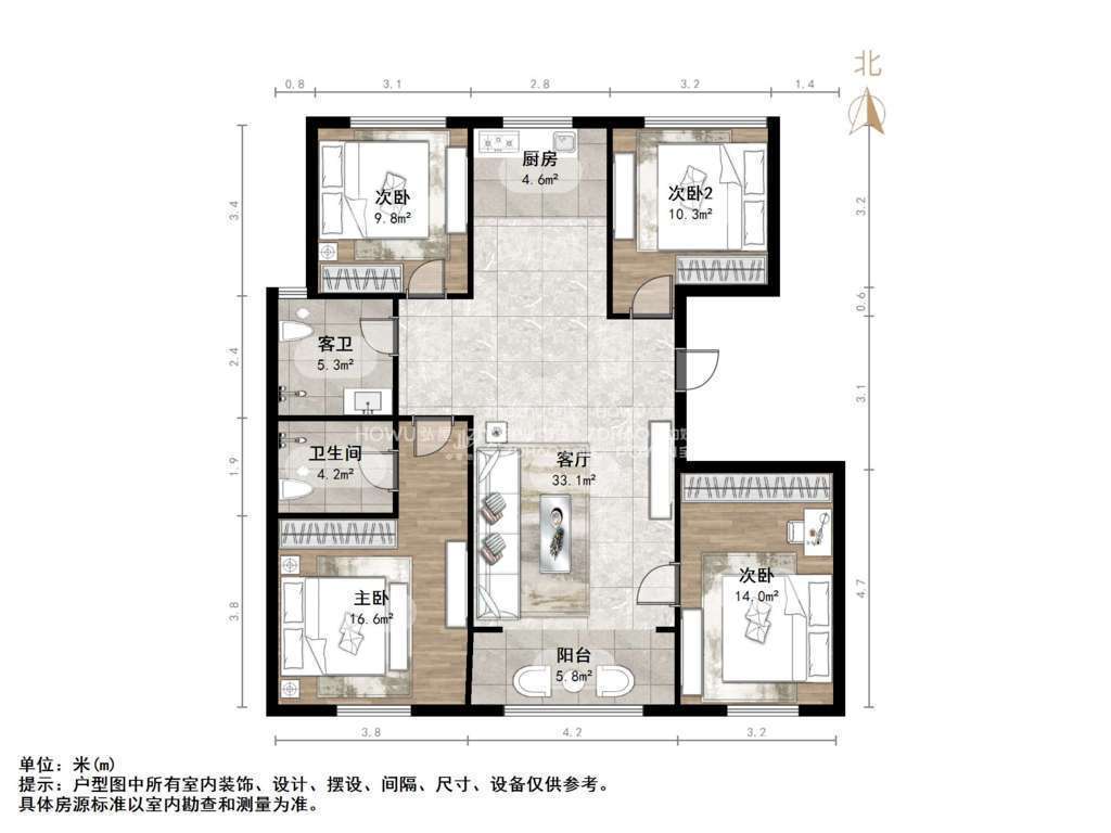 朝向南北 建筑面积132㎡