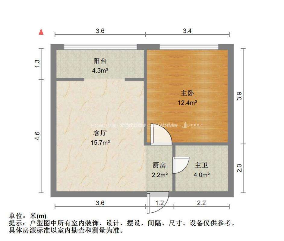 厅室1室1厅1卫1阳台