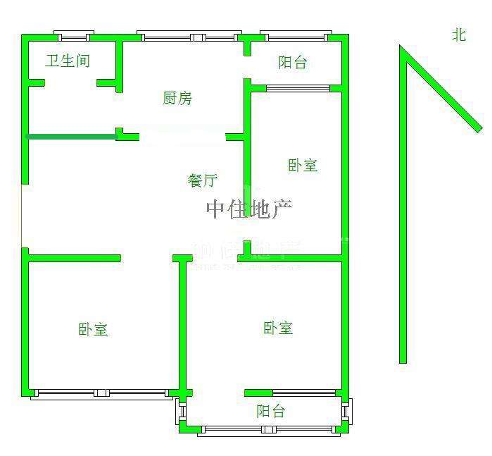 2、户型优势:3室1厅,南北卧室,客厅方正好用,单元对讲门,大院传达,安全性高!