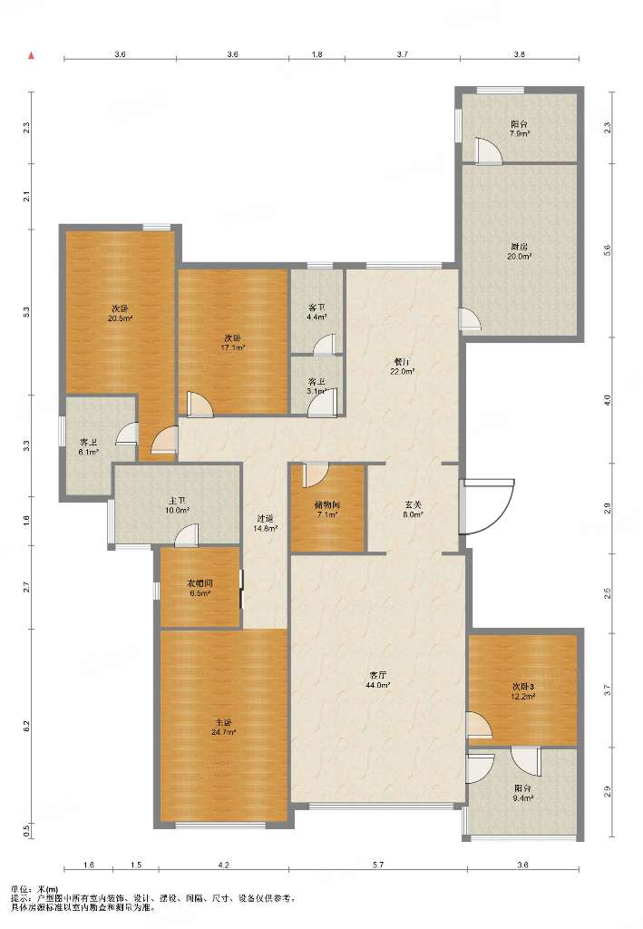 厅室4室3厅3卫2阳台