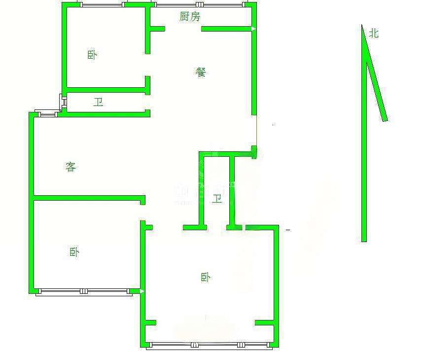 2、户型优势:3室2厅,南北卧室,客厅方正好用,单元对讲门,大院传达,安全性高!