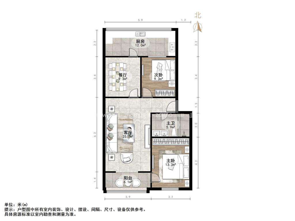 朝向南北 建筑面积105㎡