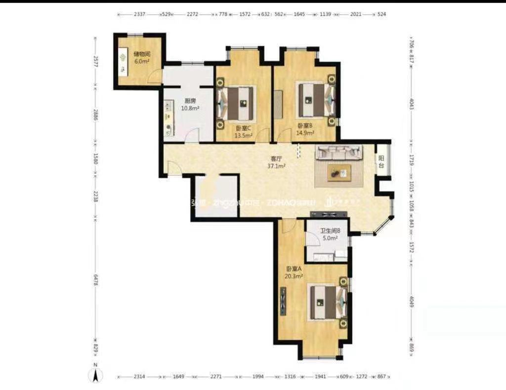 厅室3室2厅2卫1阳台