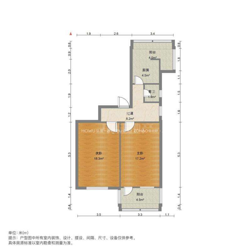 厅室2室1厅1卫0阳台