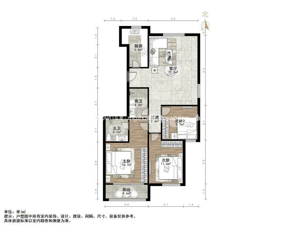 朝向南北 建筑面积120㎡