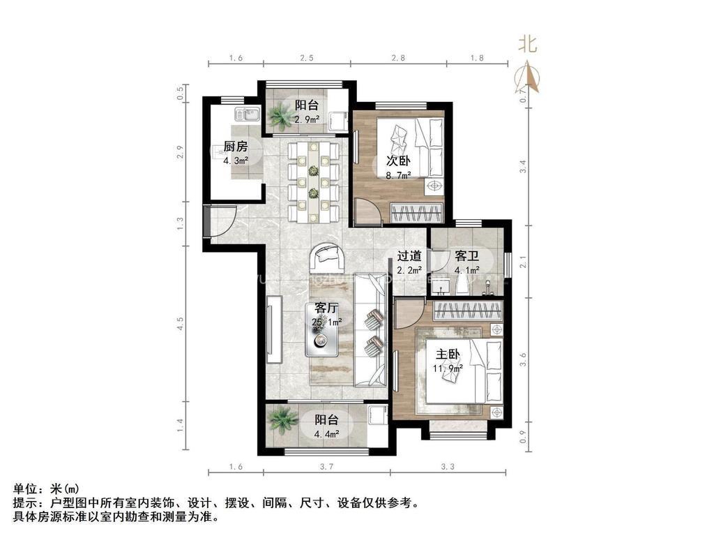 2、户型优势:2室2厅,南北卧室,客厅方正好用,单元对讲门,大院传达,安全性高!