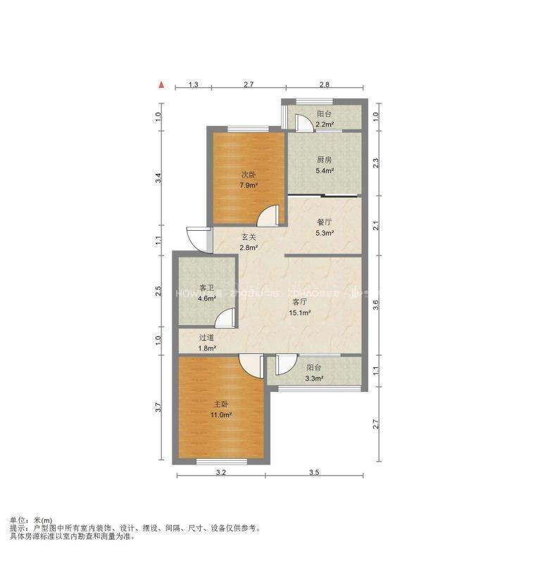 朝向南北 建筑面积89㎡