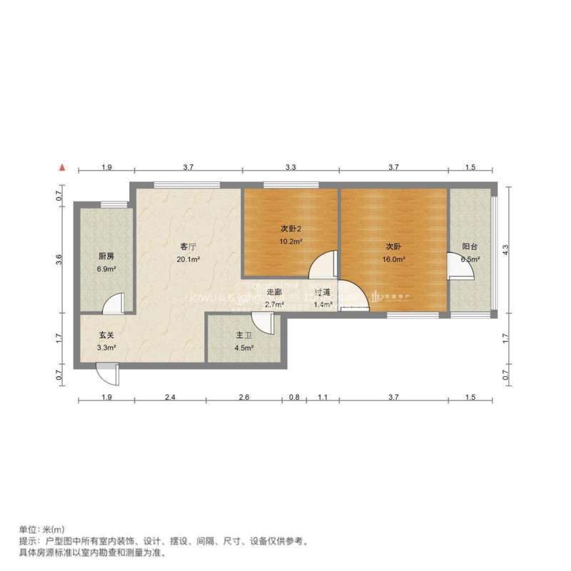 朝向南北 建筑面积83㎡
