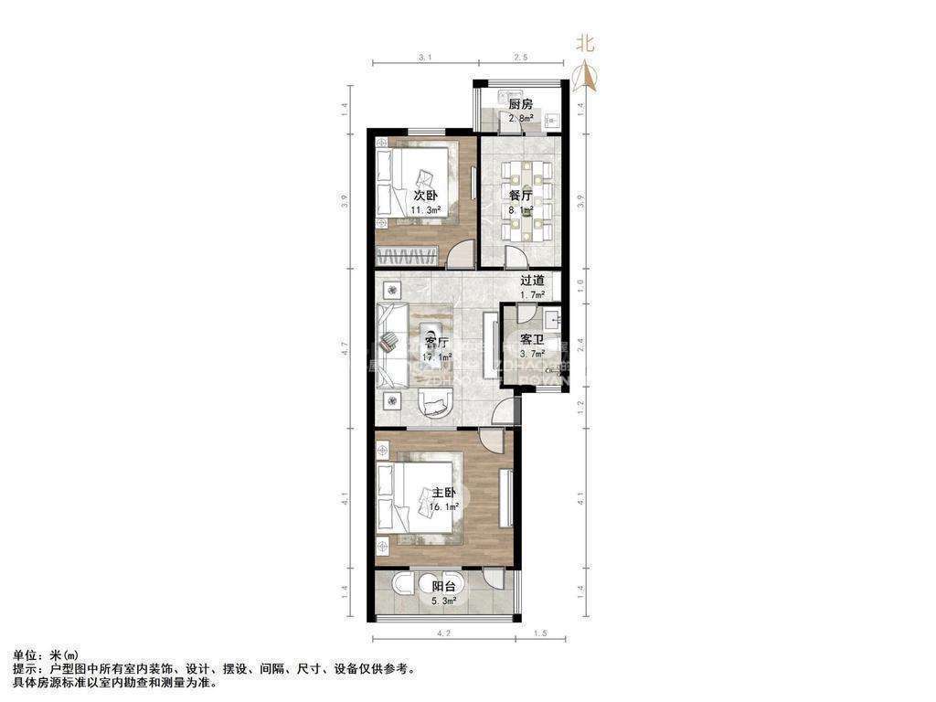 2、户型优势:两室两厅,南北卧室,客厅方正好用,单元对讲门,大院传达,安全性高!