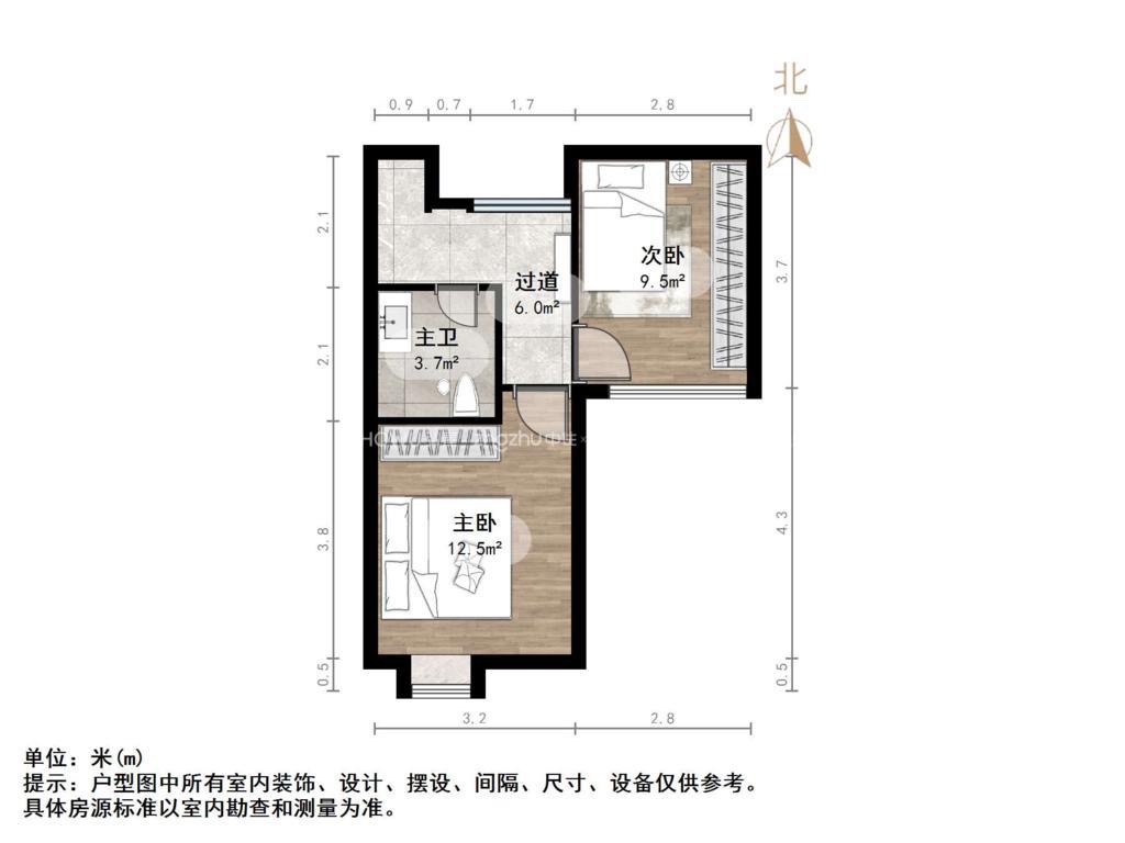 2、户型优势:2室1厅,南北卧室,客厅方正好用,单元对讲门,大院传达,安全性高!