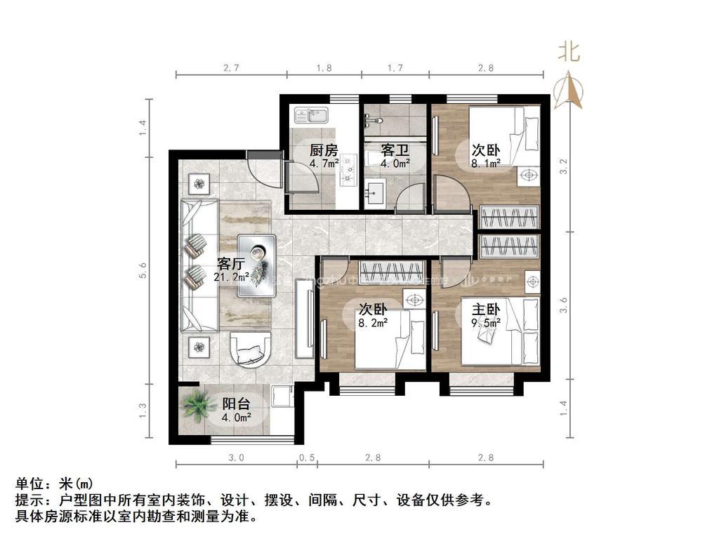 朝向南北 建筑面积95㎡