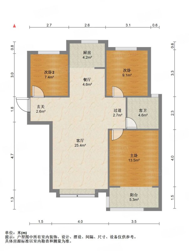 厅室3室2厅1卫1阳台