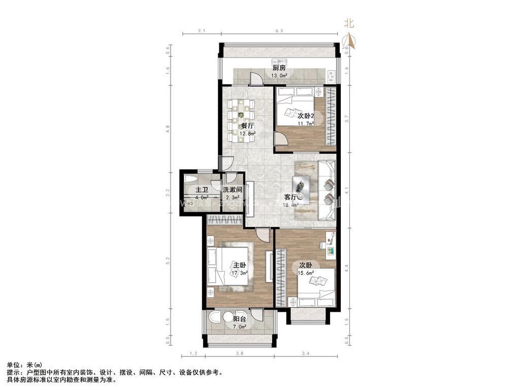 厅室3室2厅1卫2阳台