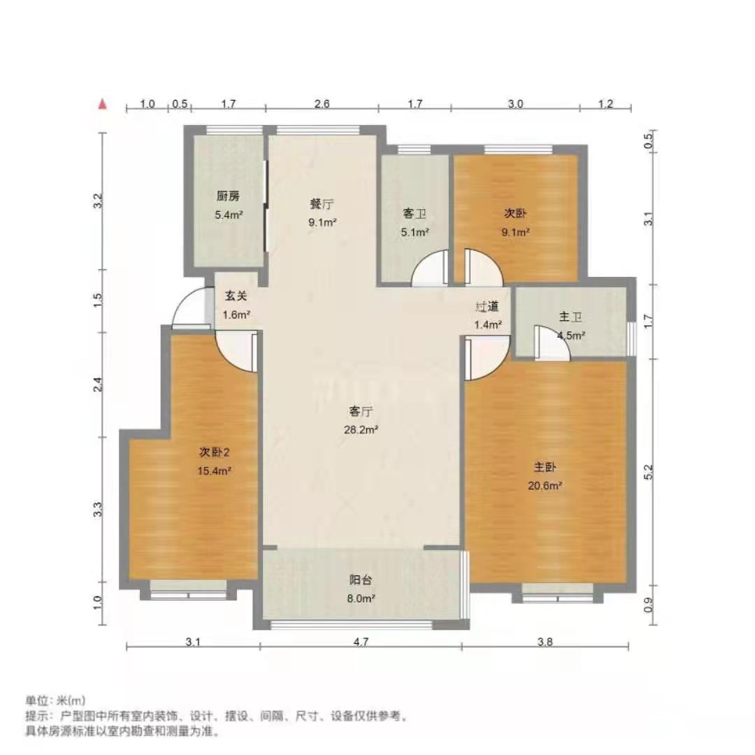 厅室3室2厅2卫1阳台
