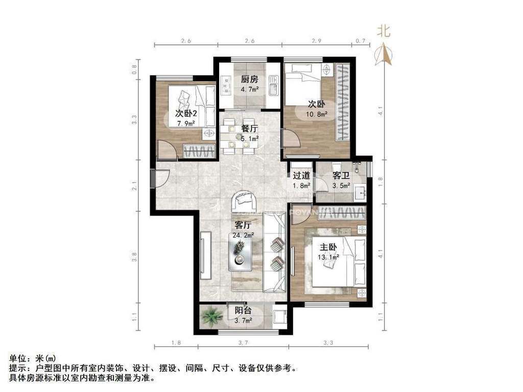 朝向南北 建筑面积108㎡