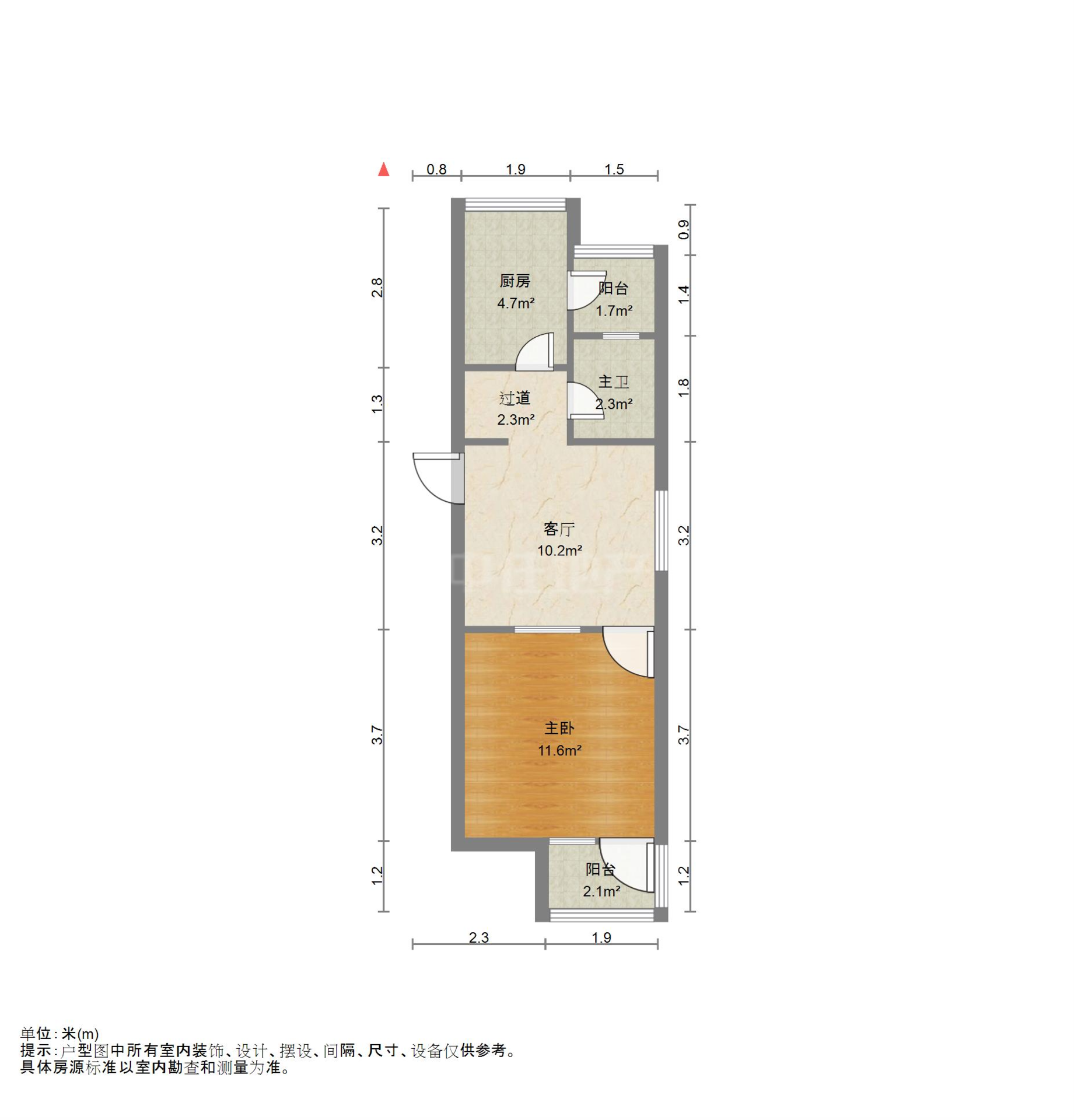 厅室1室1厅1卫1阳台
