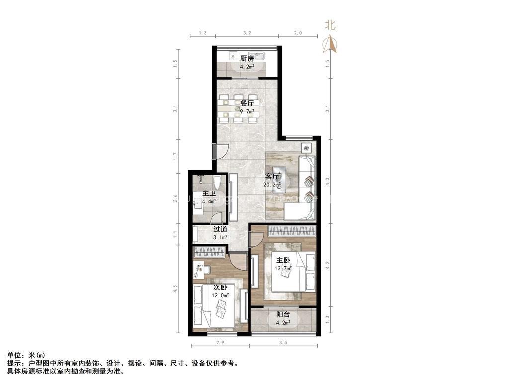 朝向南北 建筑面积80㎡