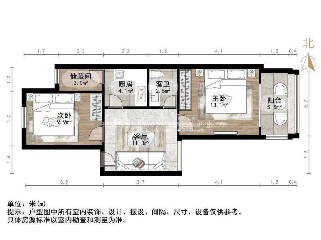 厅室2室1厅1卫1阳台