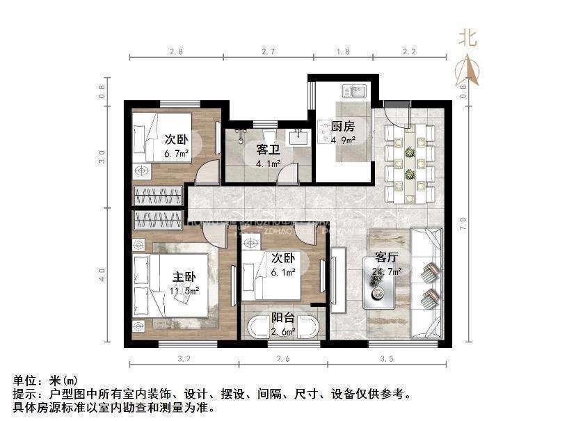 朝向南北 建筑面积98㎡