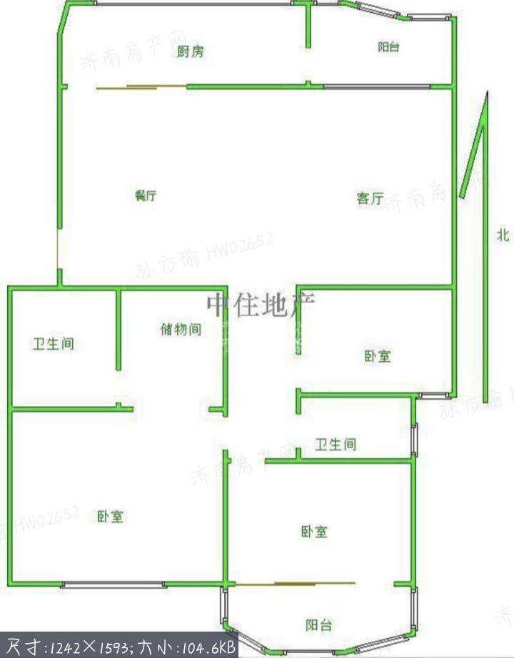 厅室3室2厅2卫1阳台