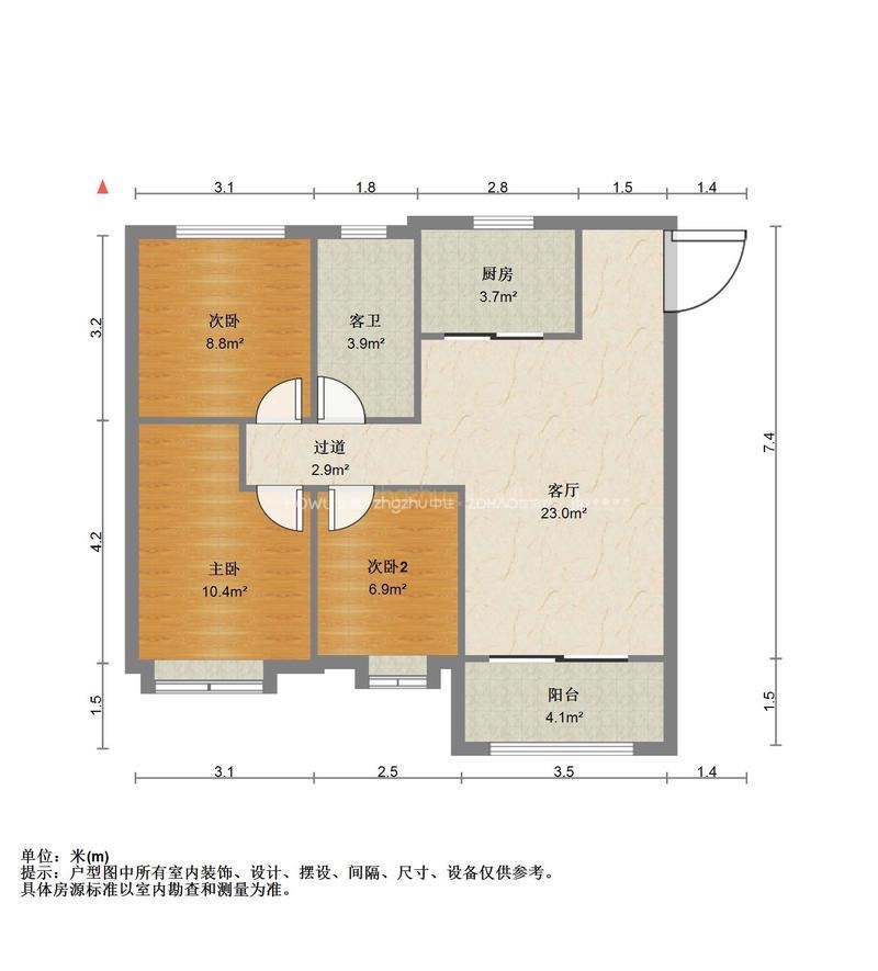 厅室3室2厅1卫1阳台