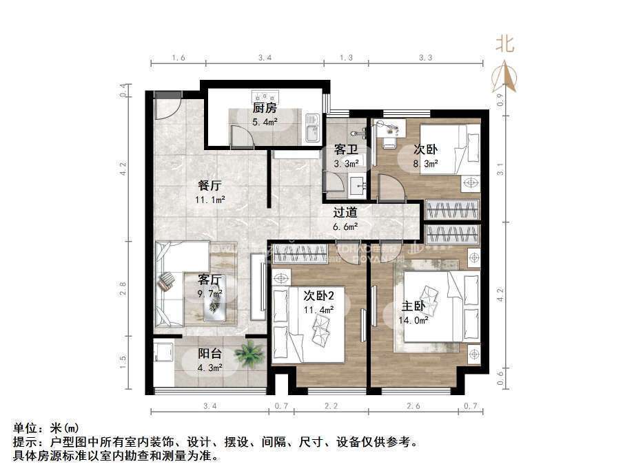 朝向南北 建筑面积111㎡