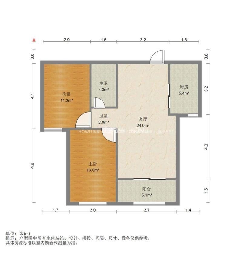 厅室2室1厅1卫1阳台