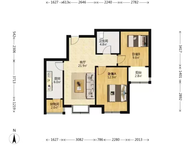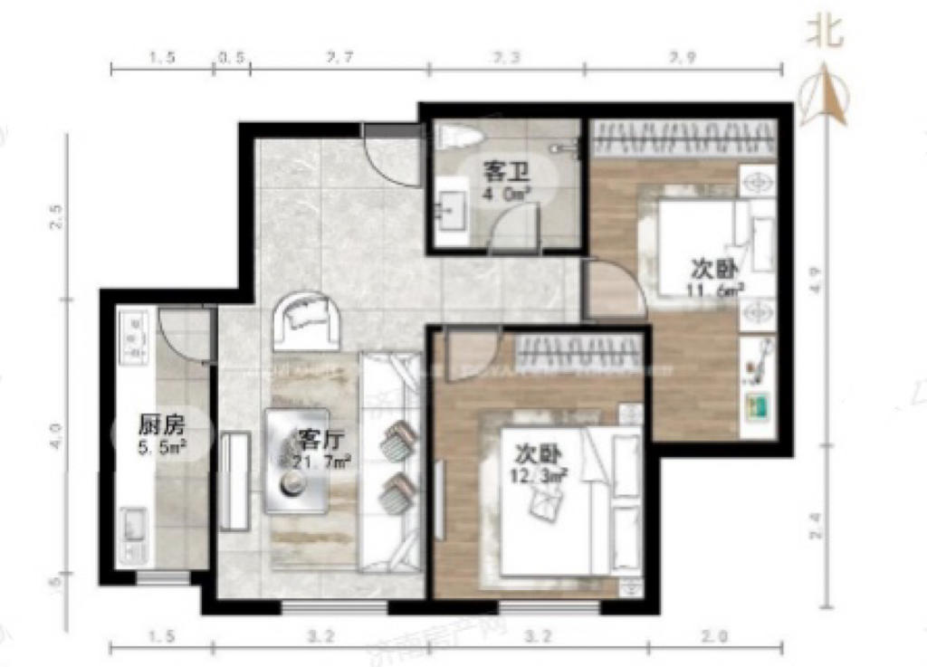 厅室2室2厅1卫1阳台