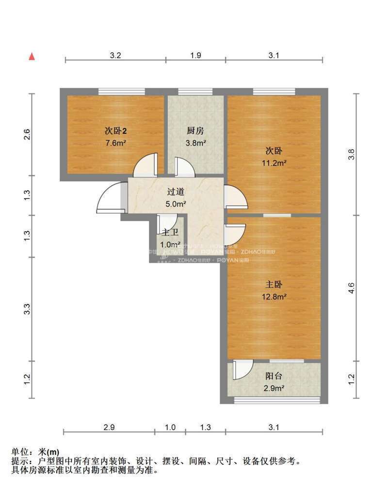 厅室3室1厅1卫1阳台