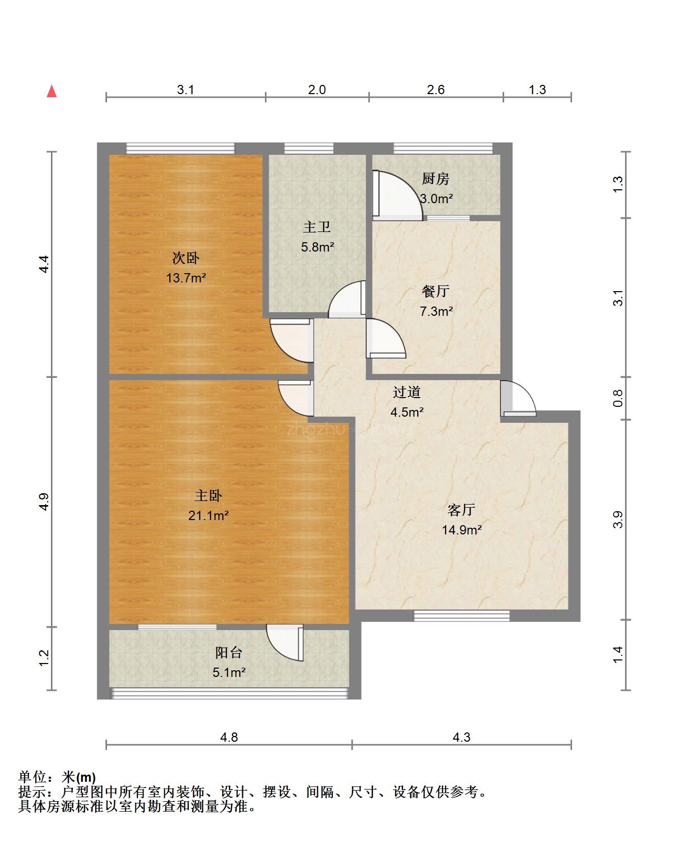朝向南北 建筑面积105㎡