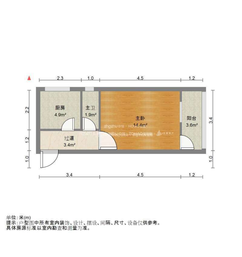 厅室1室1厅1卫1阳台