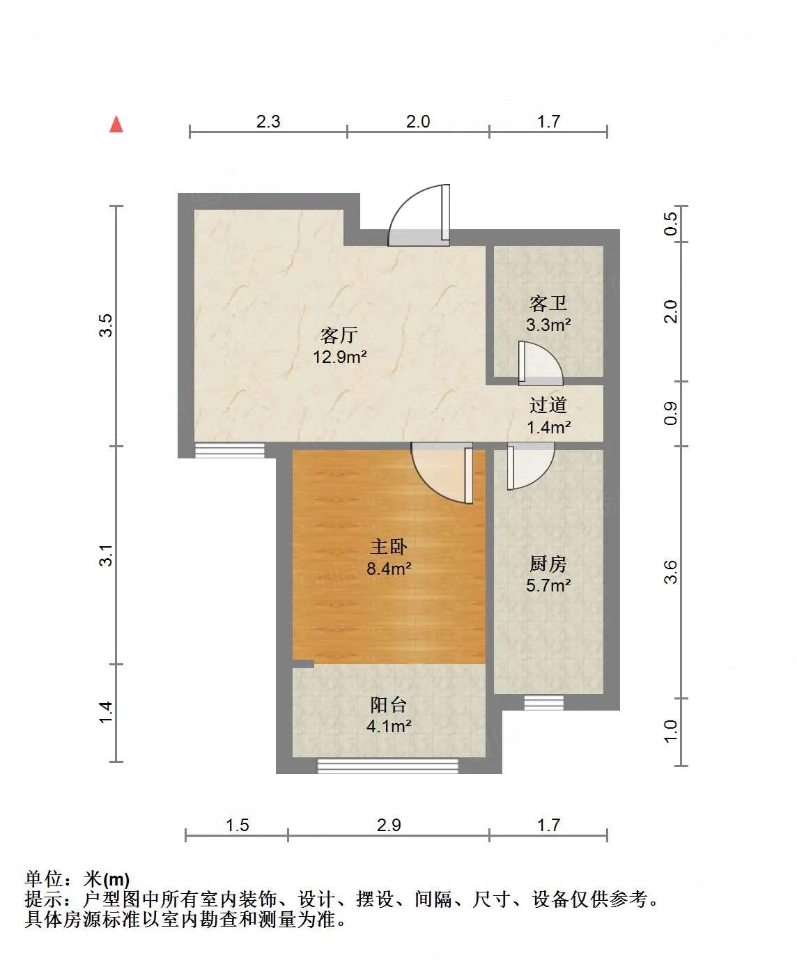 厅室1室1厅1卫1阳台