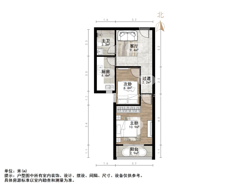 朝向南 建筑面积60㎡