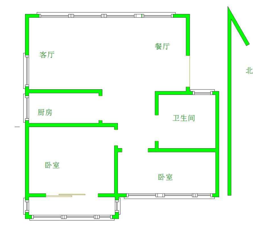 2、户型优势:2室,南北卧室,客厅方正好用,单元对讲门,大院传达,安全性高!