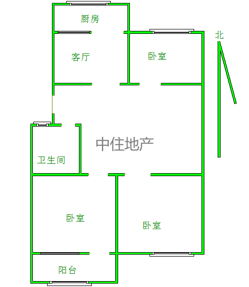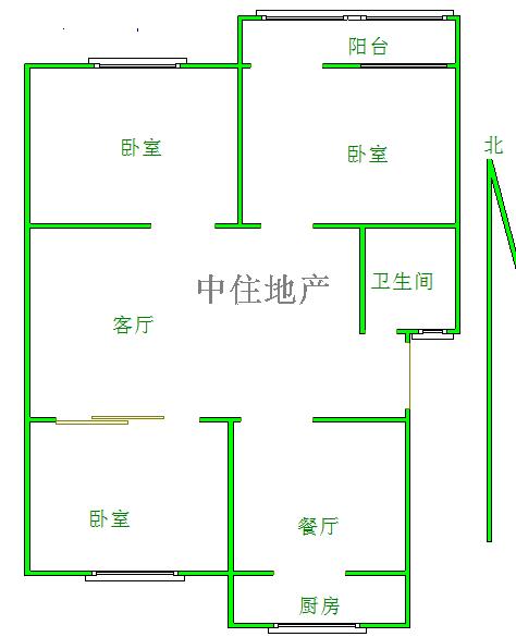2、户型优势:3室2厅,南北卧室,客厅方正好用,单元对讲门,大院传达,安全性高!