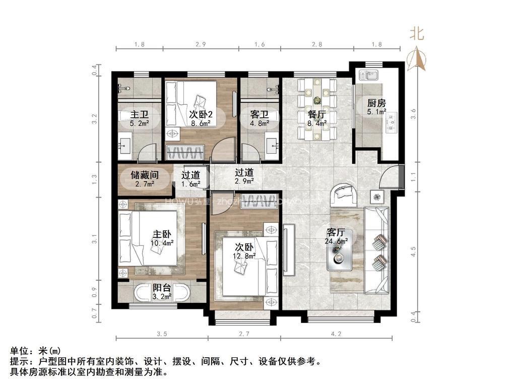 朝向南北 建筑面积130㎡